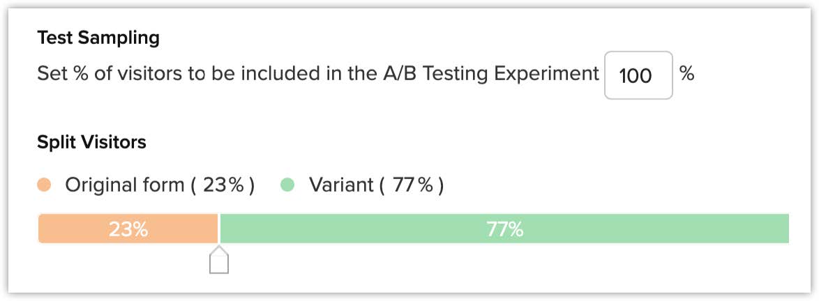 - 通过将滑块向左或向右拖动,可以在访客之间拆分原始表单和变体。