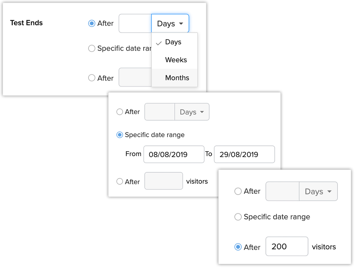 - 在达到访客限制后结束。 例如,在350位访客查看了Web表单之后,可以完成A/B测试。