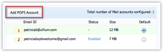 邮件账户将得到配置。 您可以启用此账户作为您的默认邮件账户。