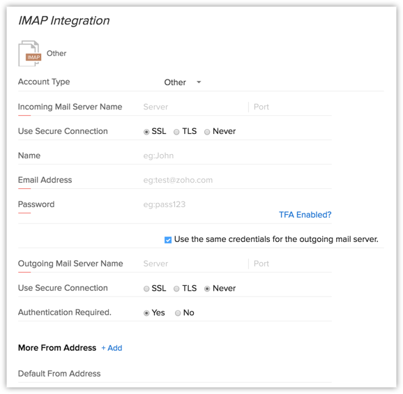 - 输入自定义名称,例如用于 Zoho CRM 的 IMAP。