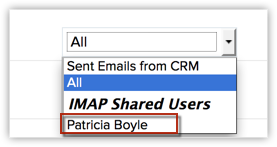 设置 IMAP 账户时,您的已发送和已接收邮件将被关联至 Zoho CRM 中的线索/联系人(邮件相关列表下方)。 这些包括发送到线索/联系人主要和次要邮件地址的邮件 此相关列表中的邮件可基于在设置其 IMAP 账户时共享其邮件账户的用户进行分类。 您可以从下拉列表中选择所有或特定客户去查看邮件。 注意查看所有邮件的选项仅在 IMAP 配置中得到支持。