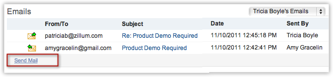 仅当您在您的 CRM 账户中有 Zoho Mail插件时,您将得到邮件选项卡。