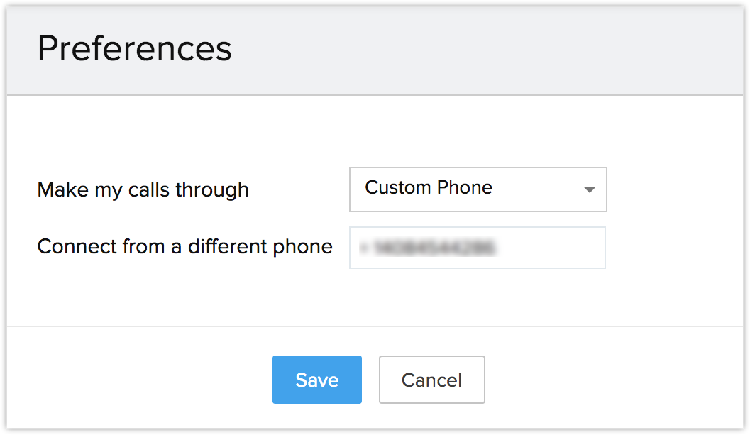 向 Zoho CRM 中联系人拨打电话时,电话通过 Amazon Connect 完成。