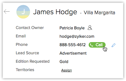 - 在记录详细信息页面,点击电话号码旁边的电话图标。