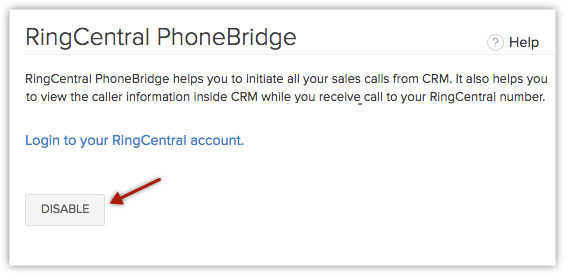 - 禁用 RingCentral 集成后,您将不能在 Zoho CRM 中通过 RingCentral 进行通话。