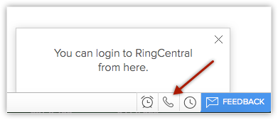 - 如果您稍后登录,您可以使用页面右下角的电话图标访问 RingCentral 登录页面。