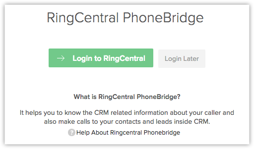 一旦您启用了 RingCentral 集成,您将得到提示,从 Zoho CRM 登录您的 RingCentral 账户。