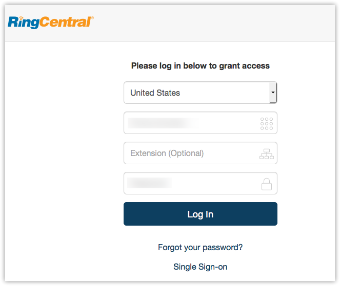 - 您将被导航至RingCentral 登录页面,在该页面上您必须输入登录详细信息然后点击登录。