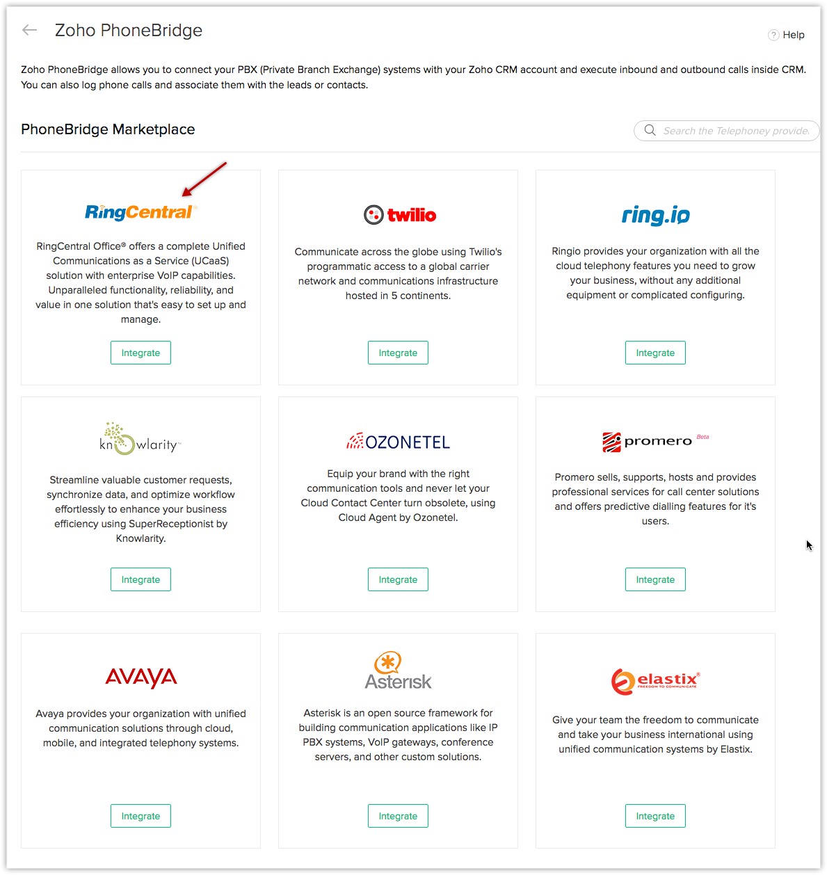 RingCentral 是与常规预置系统不同的云电话系统。 一旦您将 RingCentral 与 Zoho CRM 集成,您可以实施下列操作: