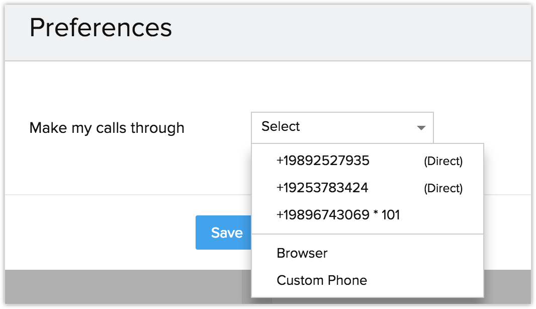 您可以直接从您的浏览器进行通话而无需使用软件电话。 这也让您可以直接在您的 CRM 内接听电话。