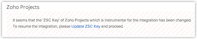 在以下情况下,您将需要更新 Zoho Projects ZSC 密钥。