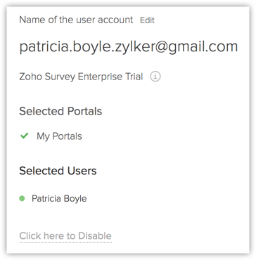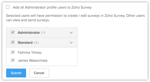 否则清除此选框,选择您想要的用户。 选中的用户将自动成为 Zoho Survey用户。