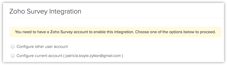 - 如果您没有 Zoho Survey账户,新账户将在您选择此选项时为您自动创建。