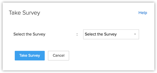 - 除了参加调查以外,您也可以分别通过点击创建调查或发送调查链接创建调查或从 Zoho Survey相关列表发送调查给客户。