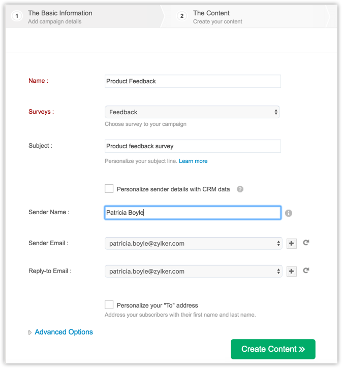 按照下面步骤从 Zoho Campaigns发送群发调查邮件