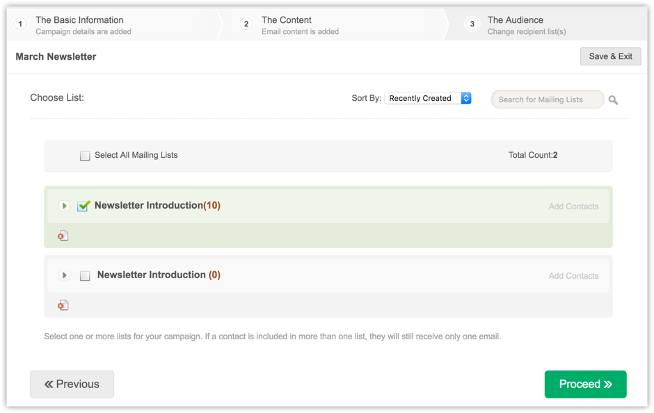 - 选择您想要向其发送调查的订阅者列表。 点击继续>>