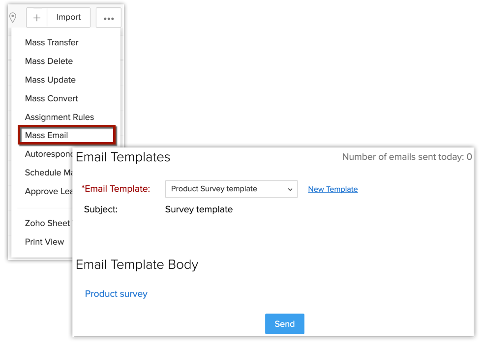 群发调查邮件给您的 Zoho CRM 联系人有两种方式。