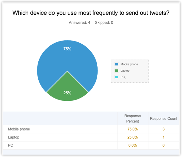 详细信息包括调查的总访问、回复的总数量、投票最多的回复等等。
