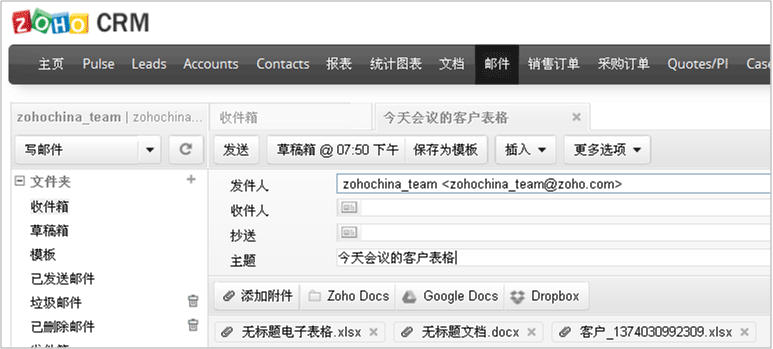 Zoho CRM的高级搜索功能可以发现近期不活跃的线索、商机,方便销售员立即跟进,把他们转化为销售盈利。CRM里提供很多搜索条件,如按销售区域,按单子金额等,可从中选择合适的条件,CRM会将销售活动和联系人按优先级排序,让销售工作更高效。
