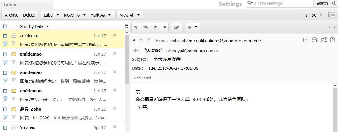 可在CRM里设置工作流提醒,当有重大交易成单时,系统会自动发送通知给相关同事和经理,分享成功的喜悦。