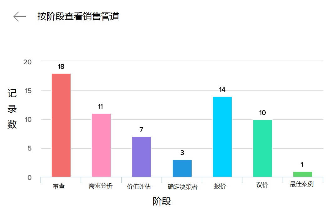 可查看本月交易量、每日收入、销售阶段等深入的数据报表。也可识别销售流程中的瓶颈问题,并发现潜在的增长机会。