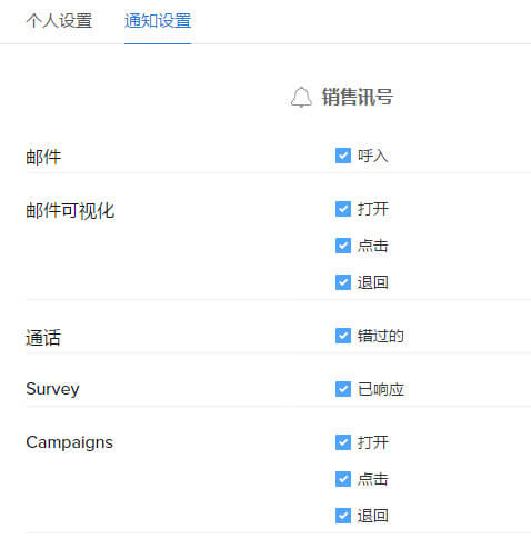 选择对团队重要的销售信号,过滤掉不需要的信息。例如,您可以选择当有人点击或退回您的邮件时向您发送提醒消息,但不接收关于打开邮件的通知。