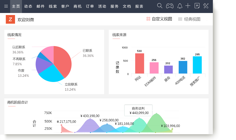 通过Zoho CRM管理客户数据,跟进销售过程,设置自动化工作流规则,在更短的时间内达成更多的交易。