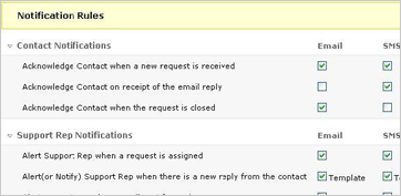 Customize your notification rules, for both your contacts and support reps by defining when and how they need to be informed related to a request. Your users can be notified through e-mail or SMS.