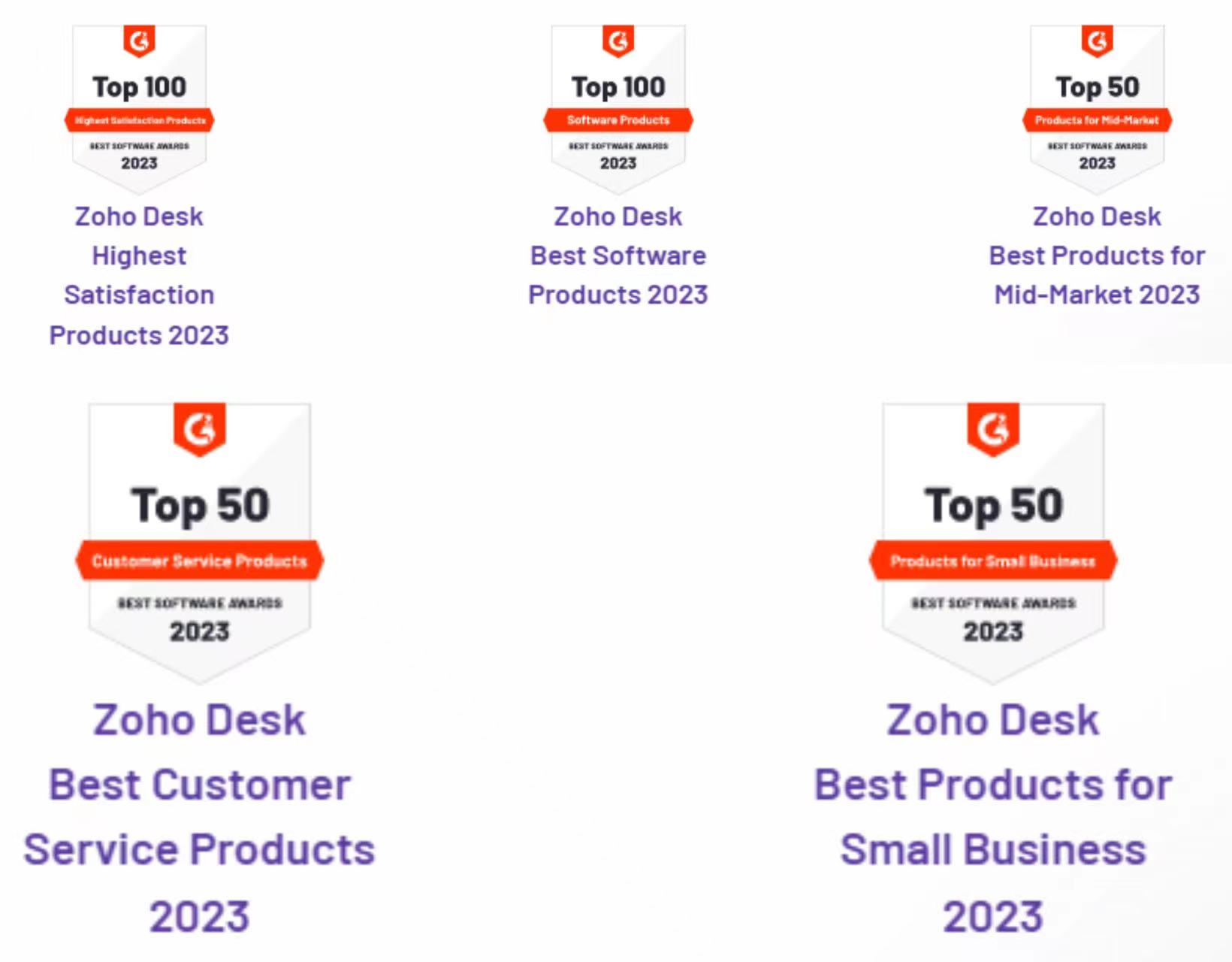 除了获得本次“年度优秀软件”称号,Zoho Desk也多次获得G2认可,截止今年3月,本年度,G2共为该产品颁布了5项荣誉。