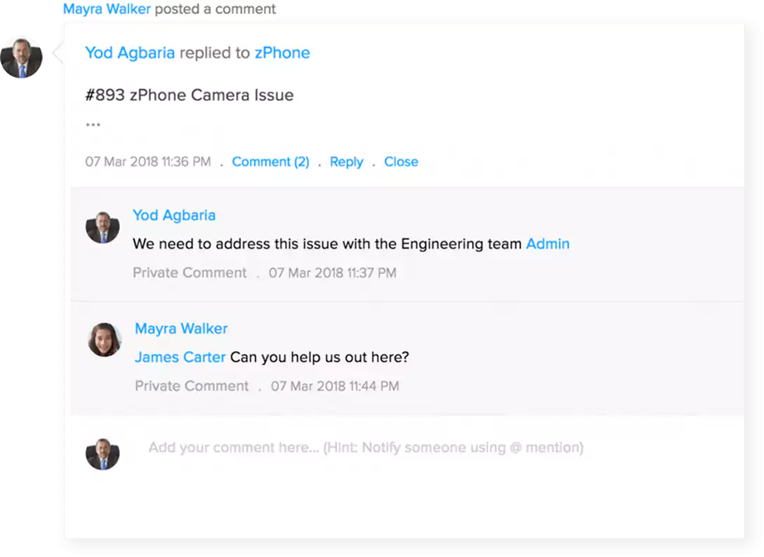 在团队分散的当下,客户服务管理软件可跨越物理距离障碍。座席通过工单共享、@提及和评论向其他成员求助,实现共同成长。