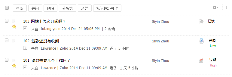 所有客户邮件将记录在这个界面,方便客服人员回复与管理。