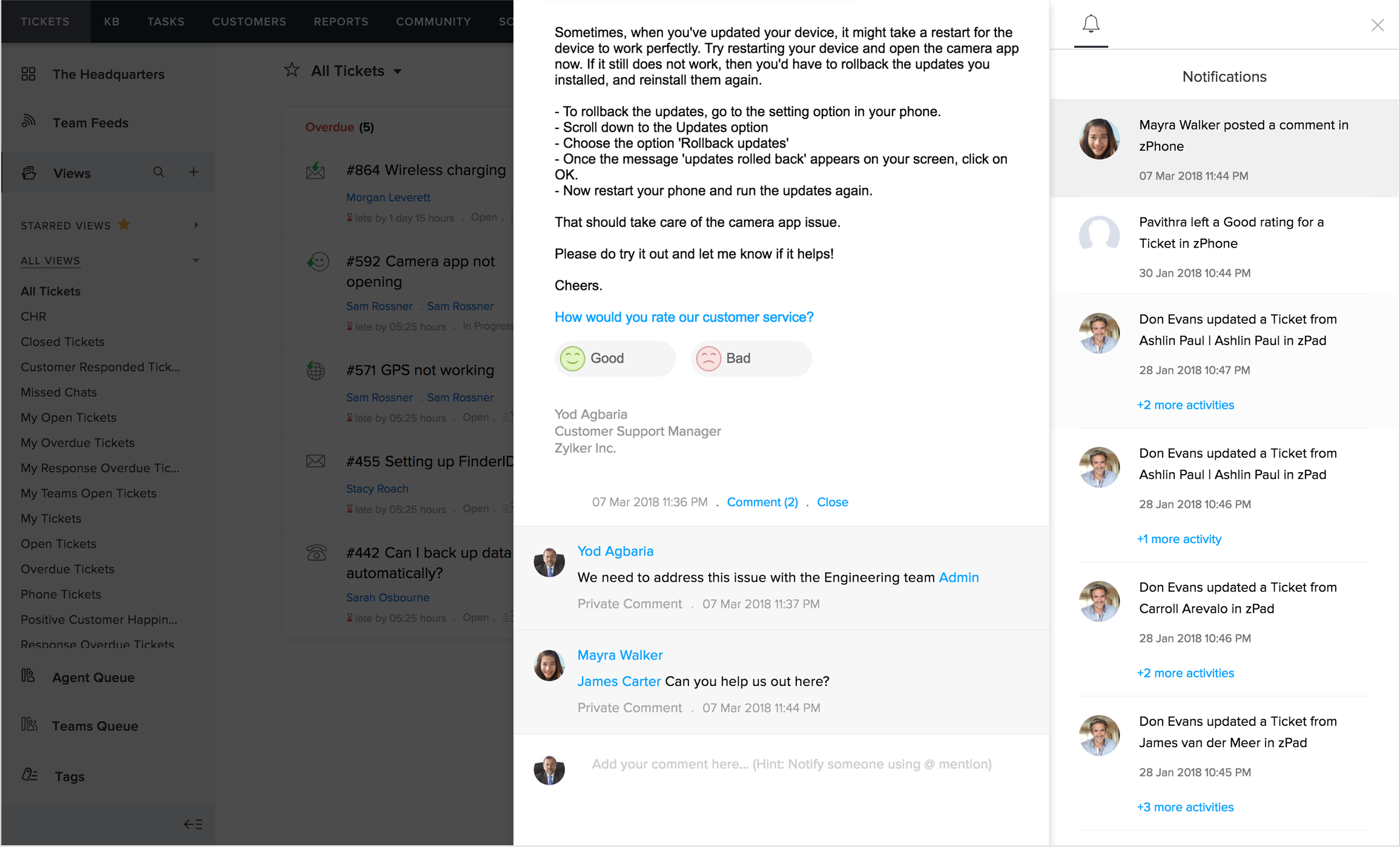 经常移动服务工单既麻烦又容易混乱。您现在可以跨部门共享服务工单,不必担心经手人太多而发生冲突。当有权访问服务工单的人员对工单执行了任何操作时,您都会收到通知。