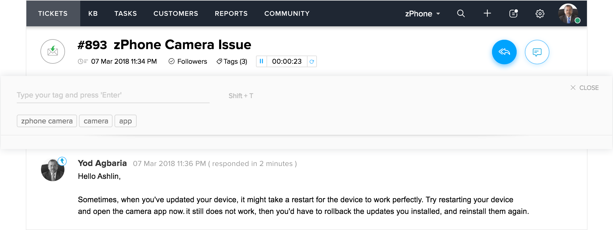 很多情况下需要多部门协作才能解决服务工单反映的问题。频繁更改服务工单负责人会十分繁琐,而单独的客服人员或部门又不能看到完整的对话。通过服务工单共享,即可告别这种拉锯战。服务工单可与相关的其他部门共享,但仍由一个父部门负责。