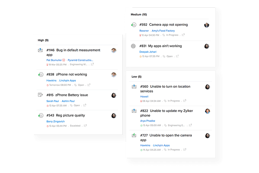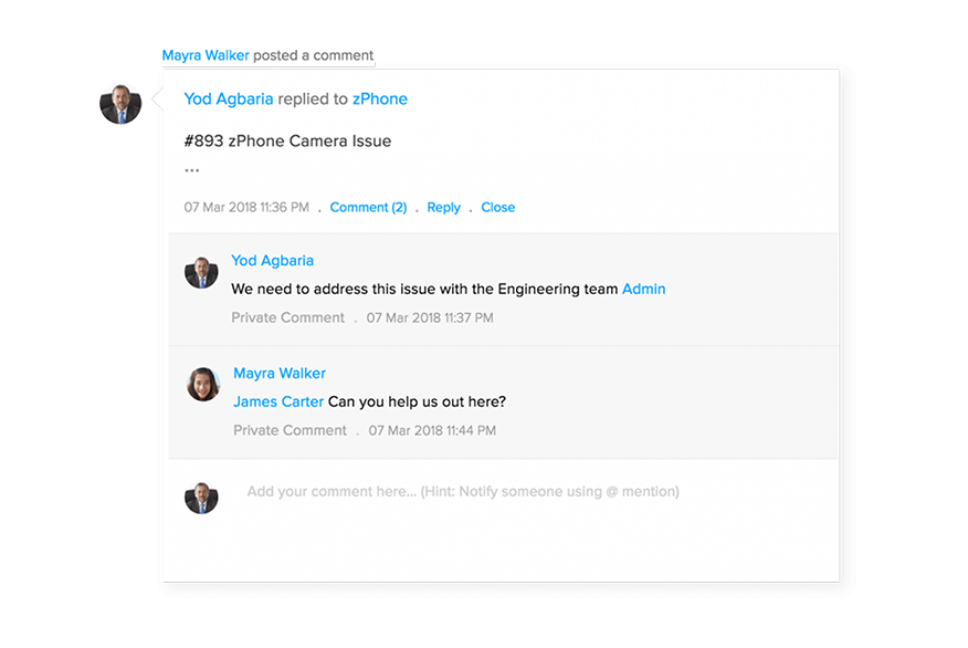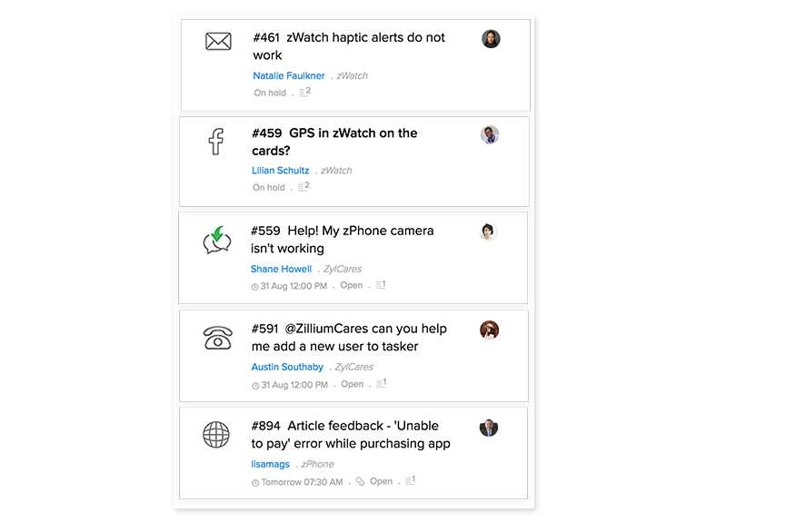 在工单系统中,客户提供的每条信息都十分重要,客服人员需要快速明确客户问题和工单进度。通过Zoho Desk, 客服团队中的成员可以通过工单状态,或团队聊天,密切团队协作,提高工单解决效率。