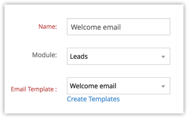 只有针对所选记录类型(模块)创建的电子邮件模板才会列示在此下拉字段中。 - 如果要创建新的自定义模板,请点击创建模板。