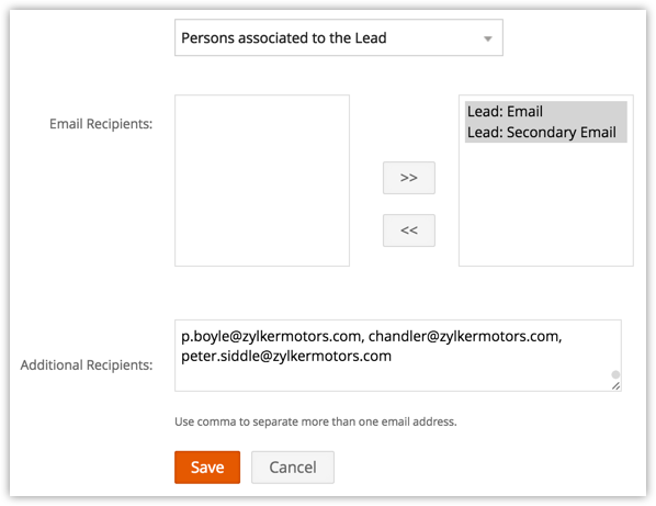 - 输入最多 10 个附加收件人的电子邮件地址。使用逗号来分隔多个电子邮件地址。