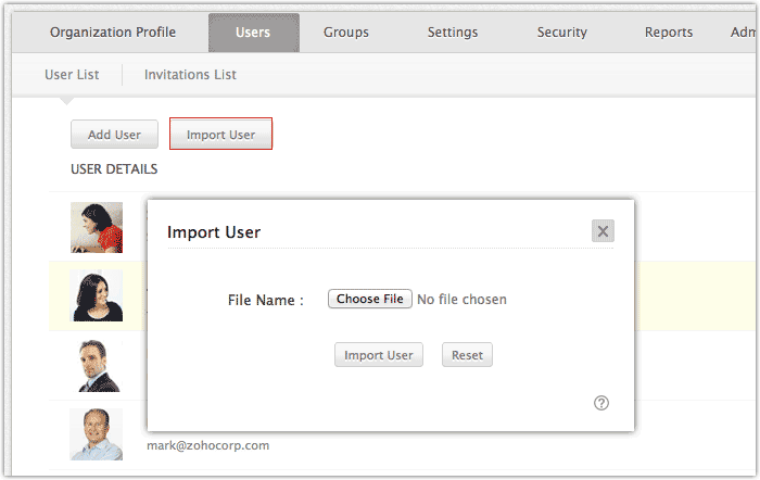Import using LDAP Directory LDAP You can directly import users from your LDAP directory to your Zoho Docs account.Enter the LDAP server details. If you require more users to be added from another LDAP server please delete the existing server details first, enter the new server details and import users. Search for particular users across the organization with the easy to search option. |