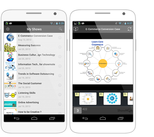 ShowMote lets you control Zoho Show presentations with your mobile device. It is not just a replacement for your clicker and pointer, but lets you do much more. Jump to any slide, refer to speaker notes, highlight any part of your slide, all using ShowMote running on your mobile.