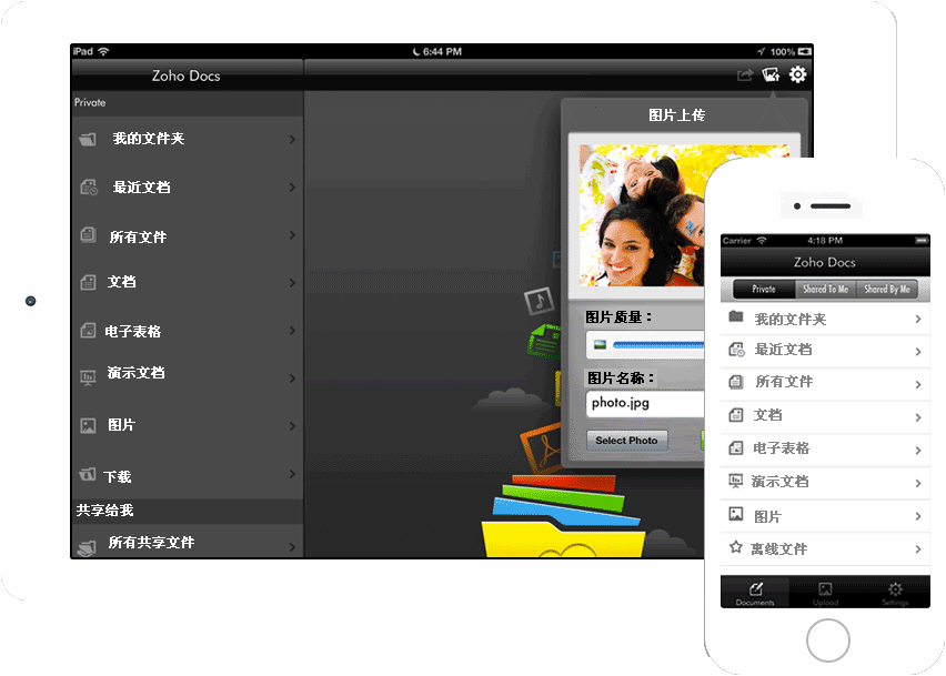 No matter where you are, carry your documents right in your pocket. Access Zoho Docs from your tablet or mobile phones, and manage your documents on the go.