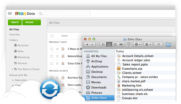 Zoho Docs integration with Dropbox makes it possible for you to sync your Dropbox files and access them directly from Zoho Docs, and also access your Zoho Docs files across various computers and mobile devices through Dropbox.