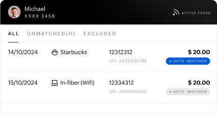 管理公司卡消费。通过自动匹配卡交易与上传的票据,实现对账流程自动化。