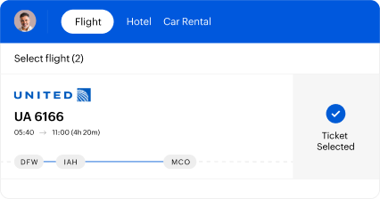 员工可根据公司差旅政策,利用丰富的可选资源,自主规划并预订机票、酒店、火车票及租车服务。