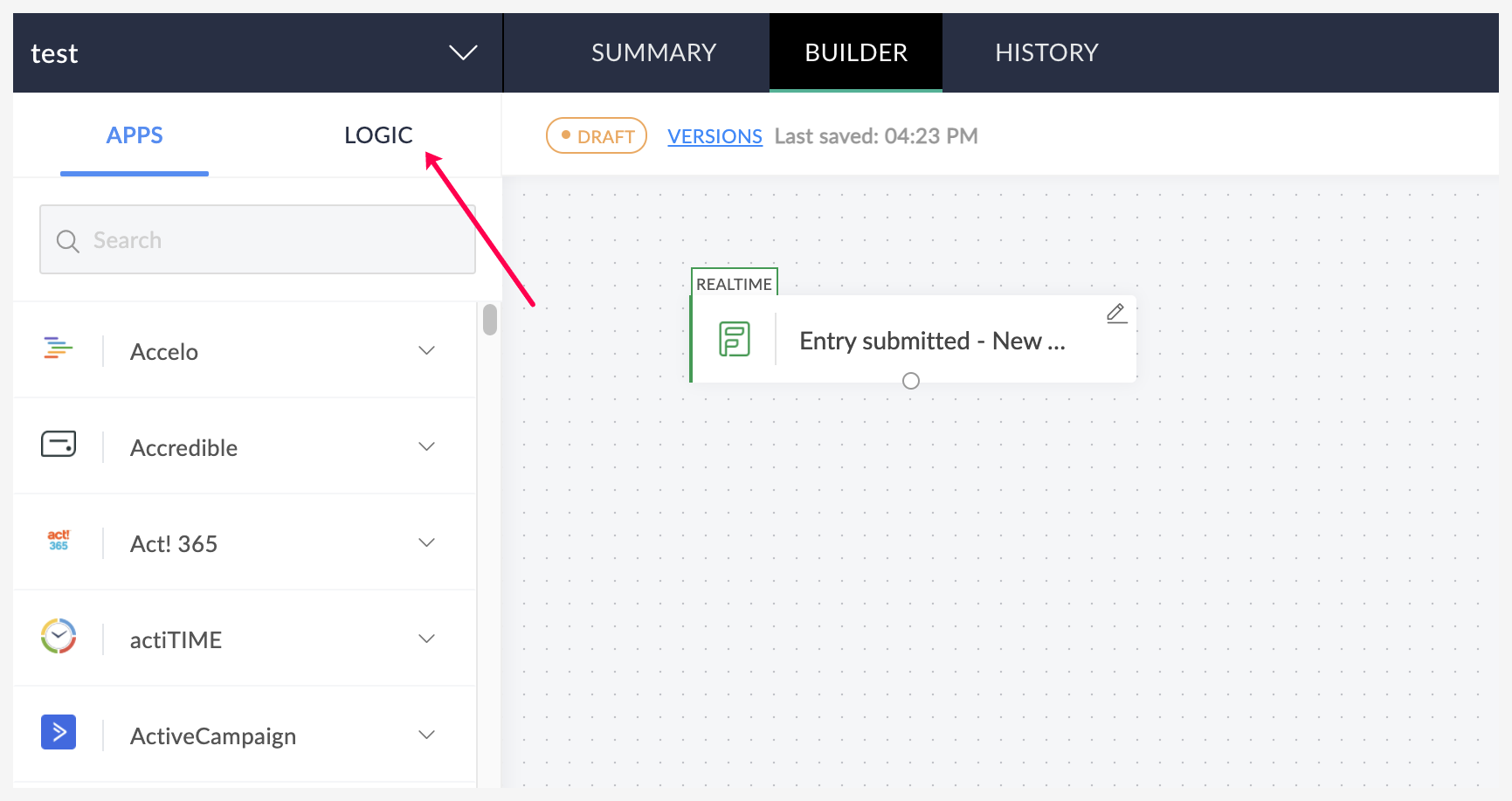 - 点击构建器左侧的逻辑页签。