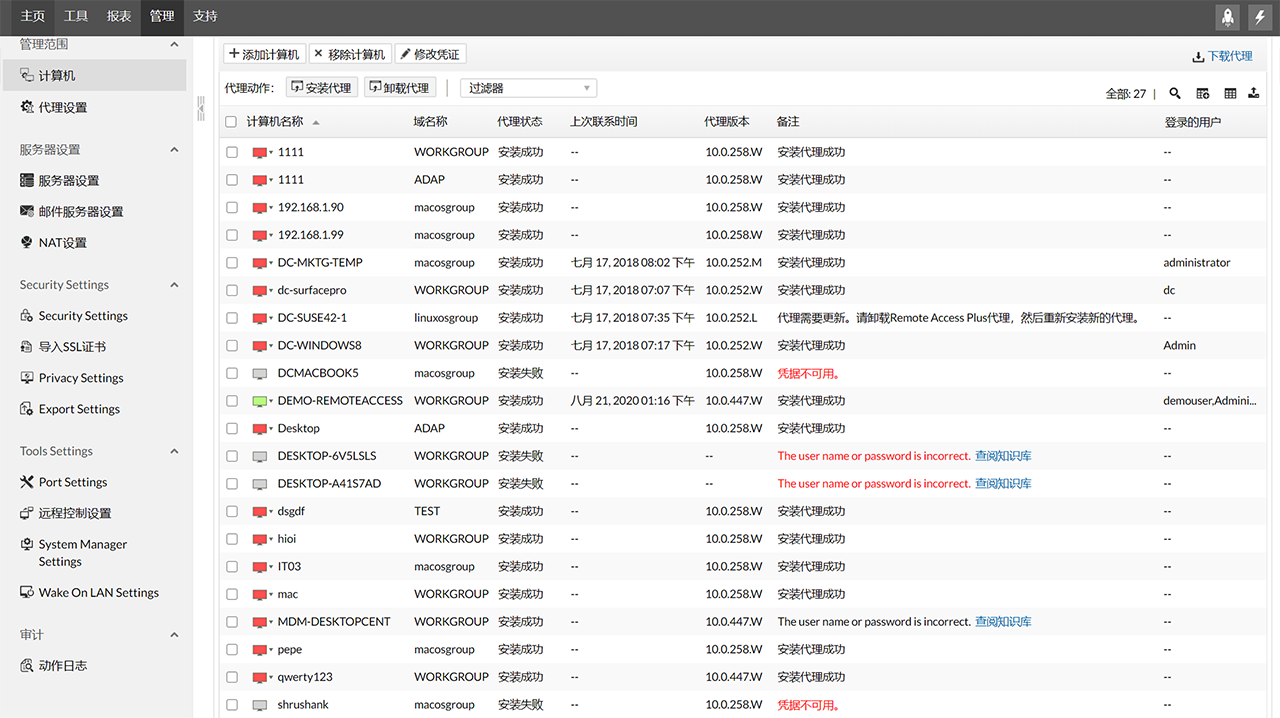 使您的团队(无论是IT服务台,外包IT还是外包服务支持)都能即时访问控制远程计算机并提供高效的服务。易用的部署配置,会话记录和App管理,可帮助您轻松管理远程计算机。