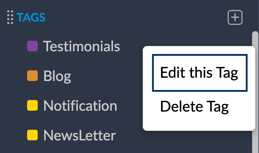 - 单击左窗格中“标签”菜单旁边的 + 图标。