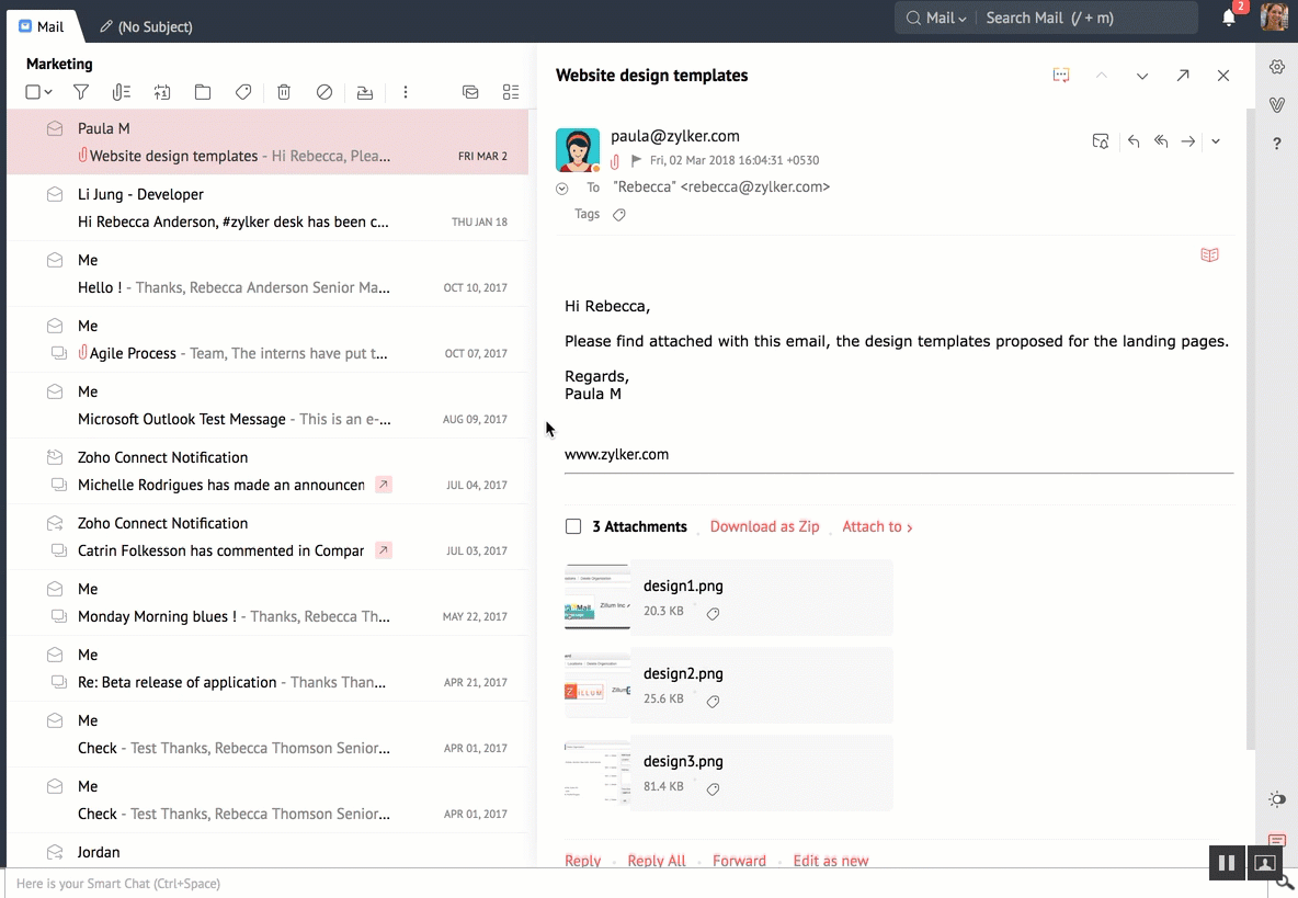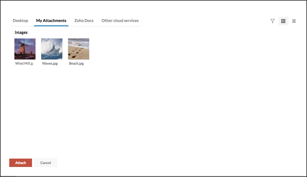 - Zoho Mail 允许您使用“我的附件”部分浏览现有附件。