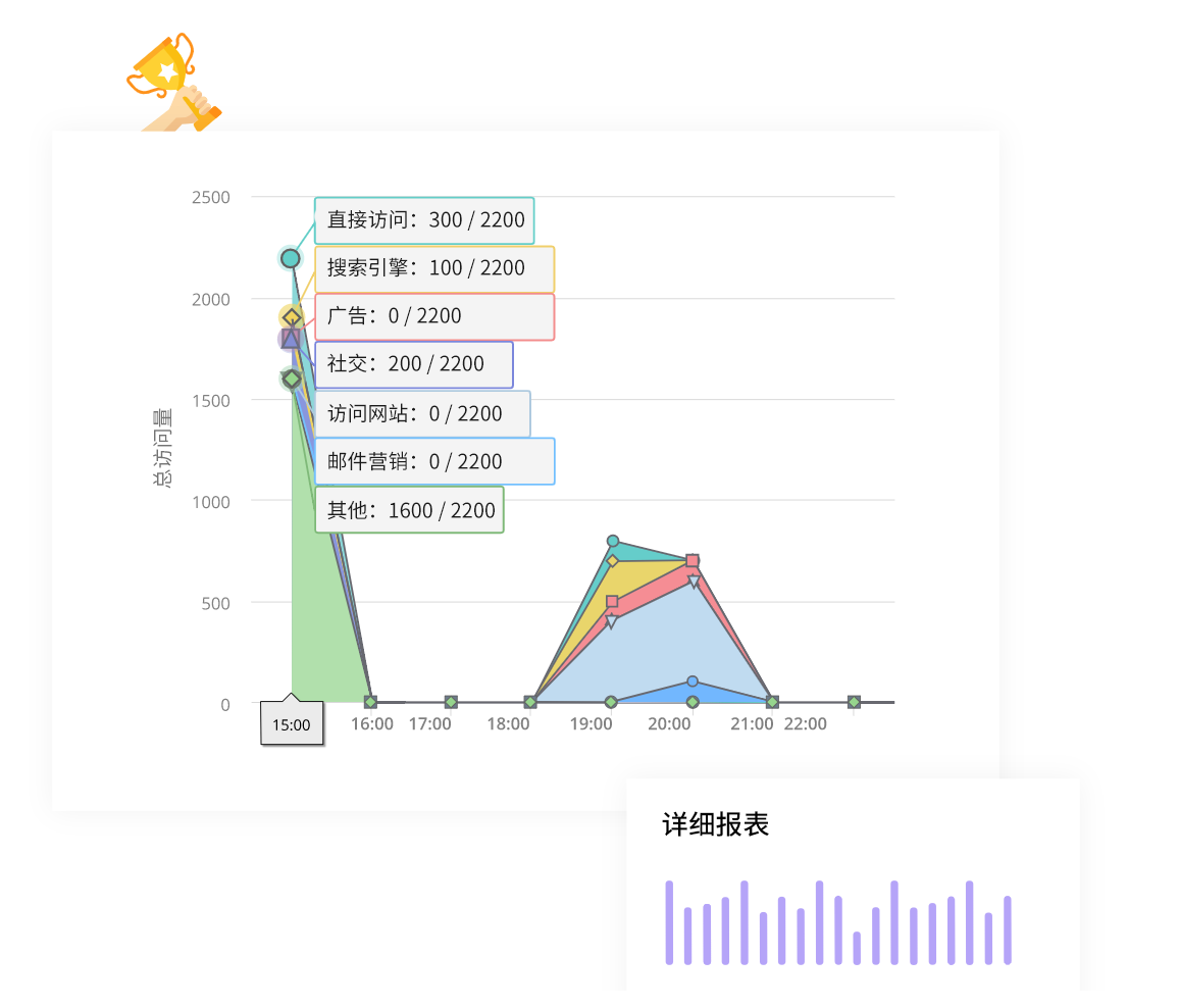 我们提供专业精准的数据分析报表,比如渠道归因,为您展示重要的营销指标-从获取客户到客户忠诚度,帮您及时调整措施,更快地实现营销目标。