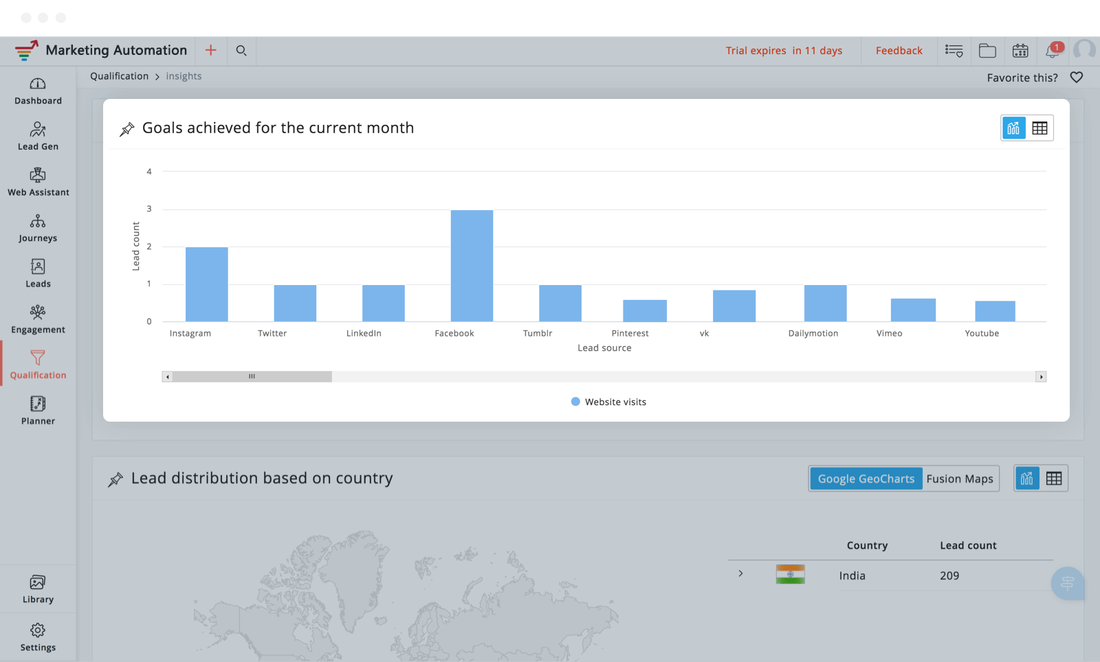 Zoho Marketing Automation 可以帮您分析营销工作,包括各种获取线索的渠道,线索在销售漏斗中所处的阶段,他们的增长情况等,有助于改善互动,开发,转化更多优质的线索。