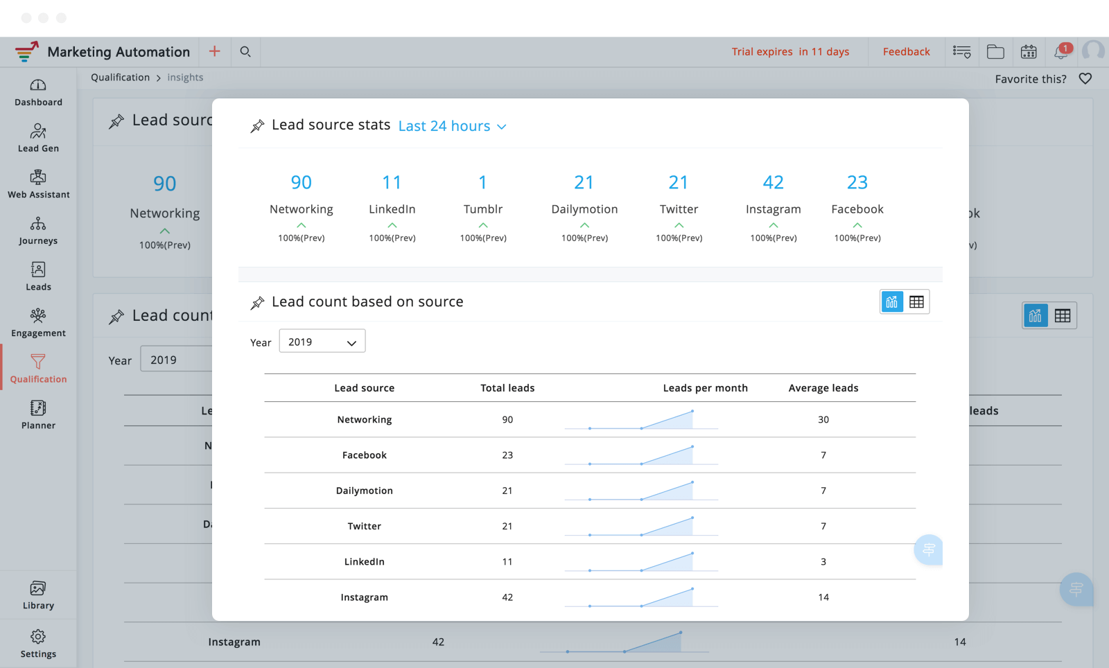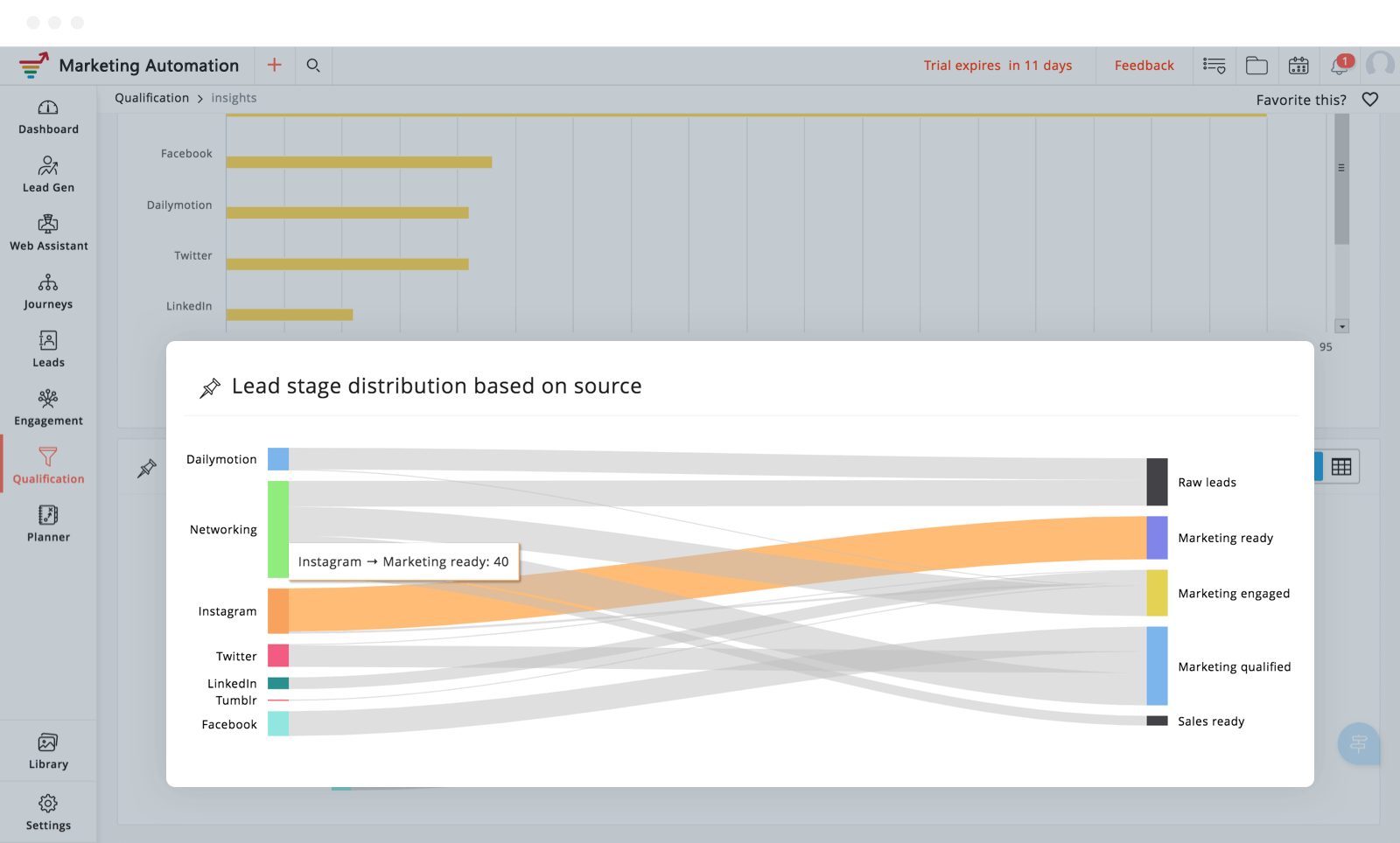 全面了解不同渠道的线索质量。 Marketing Automation 可以比较不同时间段内不同平台的线索增长趋势,以便将线索分为:好、一般和欠佳。