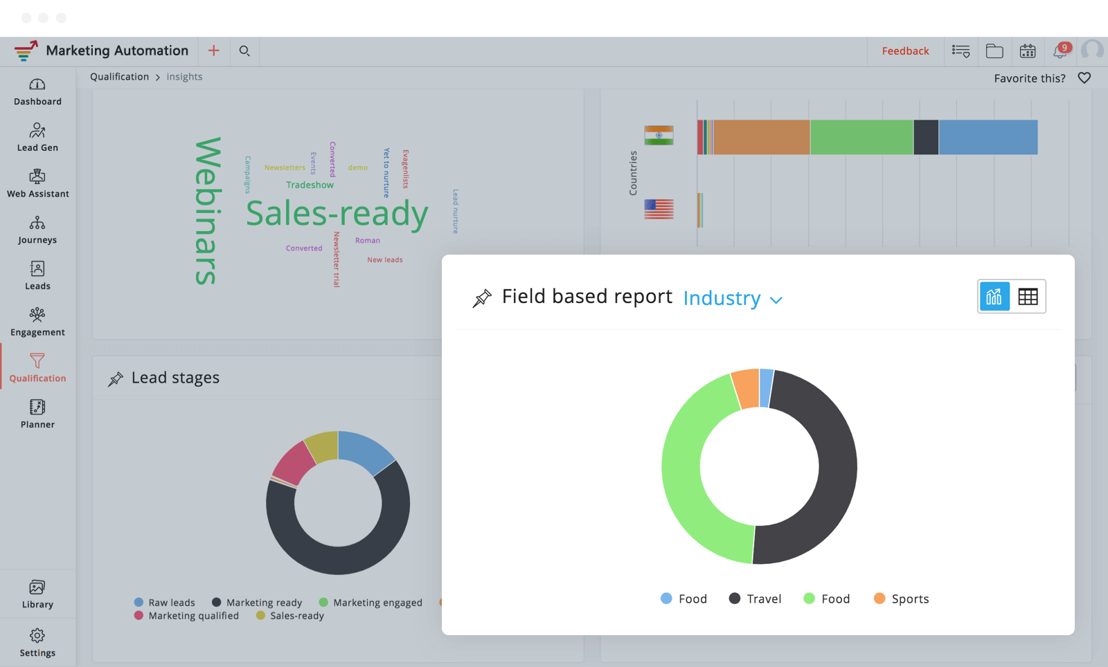通过 Zoho Marketing Automation,根据与线索的互动情况,分析各个阶段的线索数量以及来源,明确线索在销售周期中所处的阶段。